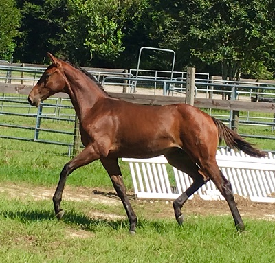 This filly is by the spectacular stallion, Florianus II. Florianus II (Florestan/Damenstolz) has an imprssive pedigree of dressage stallions. He has produced phenomenal young prospects that are very correct with super temperaments (very amateur-friendly) and three high quality gaits. More information, pictures, and video can be found at his farm's website, Iron Spring Farm.